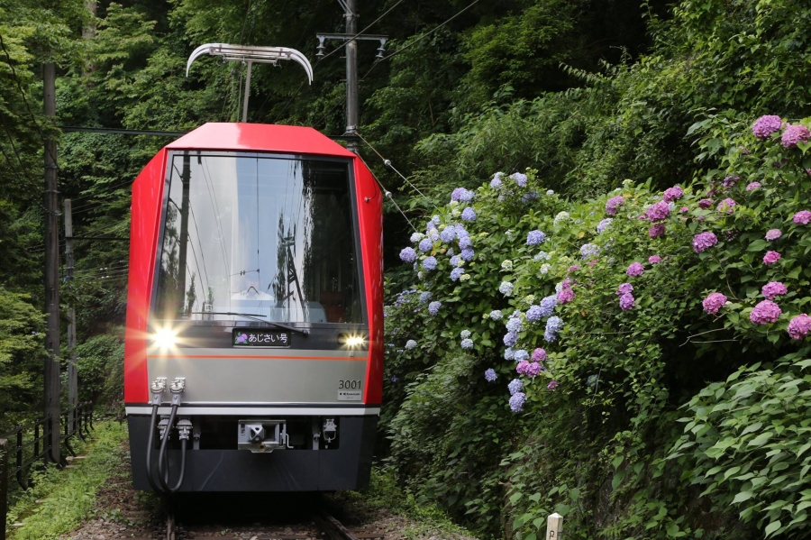 今日は関東地方で春一番が吹いたようですね。これから春が近づいてくるという時期に気の早い話ですが、箱根登山鉄道恒例の「あじさい電車」の運行が決定しました!6月17日(土)から7月2日(日)までの運行となります。