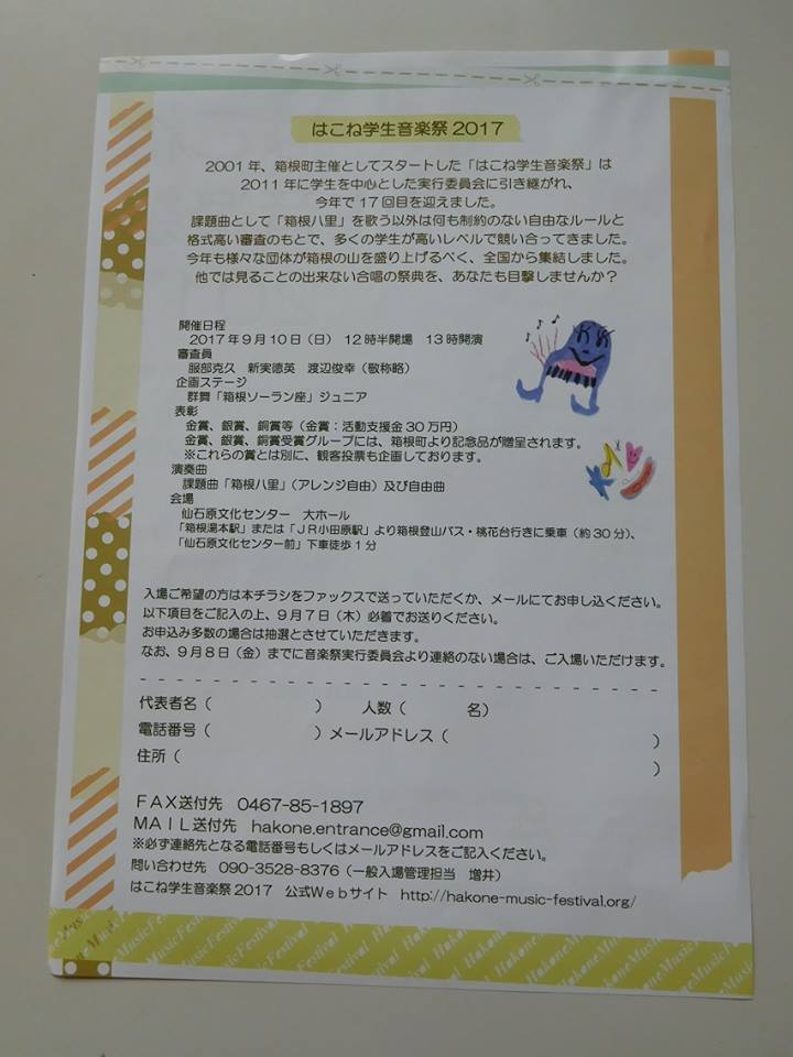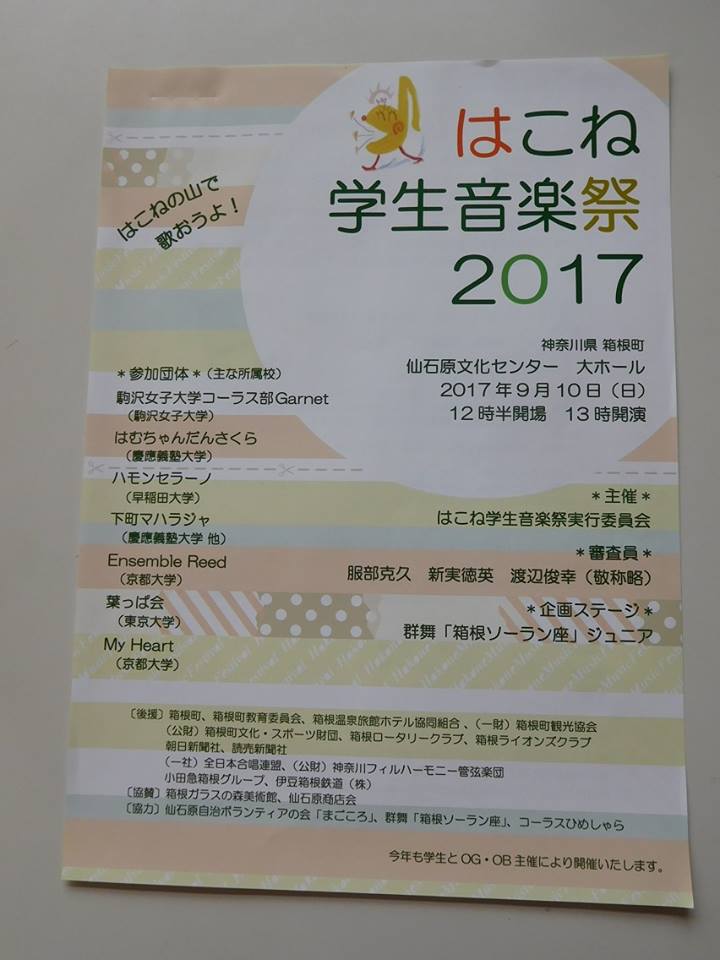 今日は、来月10日(日)に開催されるはこね学生音楽祭2017について紹介します。2001年に箱根町主催としてスタートした「はこね学生音楽祭」は2011年に学生を中心とした実行委員会に引き継がれ、今年で17回目を迎えました。これまでも多くの学生達が高いレベルで競い合ってきましたが、今年もハイレベル間違いなし!是非学生たちの素晴らしい歌声を聴いて、癒されませんか?
