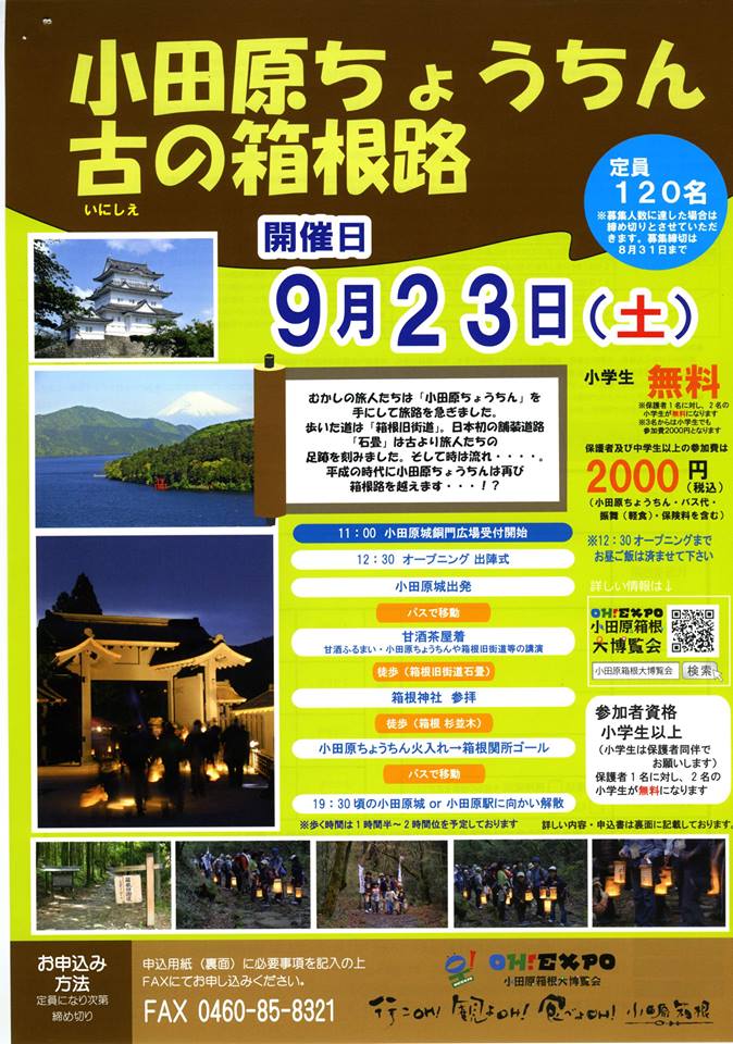 今日は9月23日(土)に開催される「小田原ちょうちん古の箱根路」について紹介です。