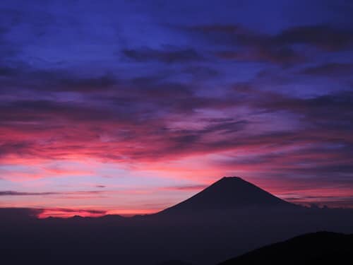 駒ヶ岳山頂の標高は1,356mと箱根外輪山の中でも2番目に高い山です。夕陽が富士山の裾まであたり赤く染まる光景 を見ることができるのは、芦ノ湖畔周辺では駒ヶ岳山頂のみです。