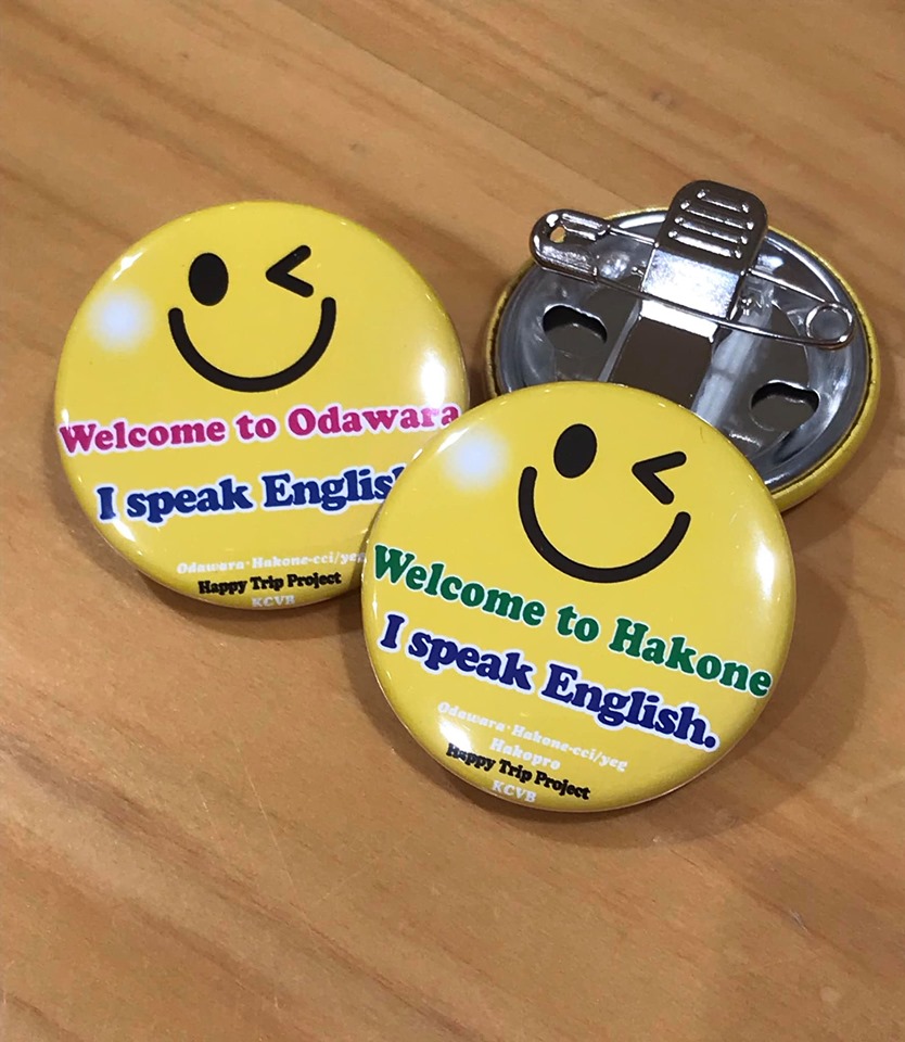いよいよラクビーワールドカップが開幕しますね。箱根ににも長期休暇を取り試合観戦の合間に観光に訪れる多くの海外からのお客様さまが増加することが予測されます。インフラ整備も進めつつ、接客、コミュニケーションのきっかけづくり策として、英語が話せるスタッフをわかりやすくする缶バッチをつくりました!ただ今、各観光施設に配付を開始しています。話せる安心をわかりやすく!海外からのお客様と言葉を交わし親しみやすい観光地を目指して先ずはやってみます!