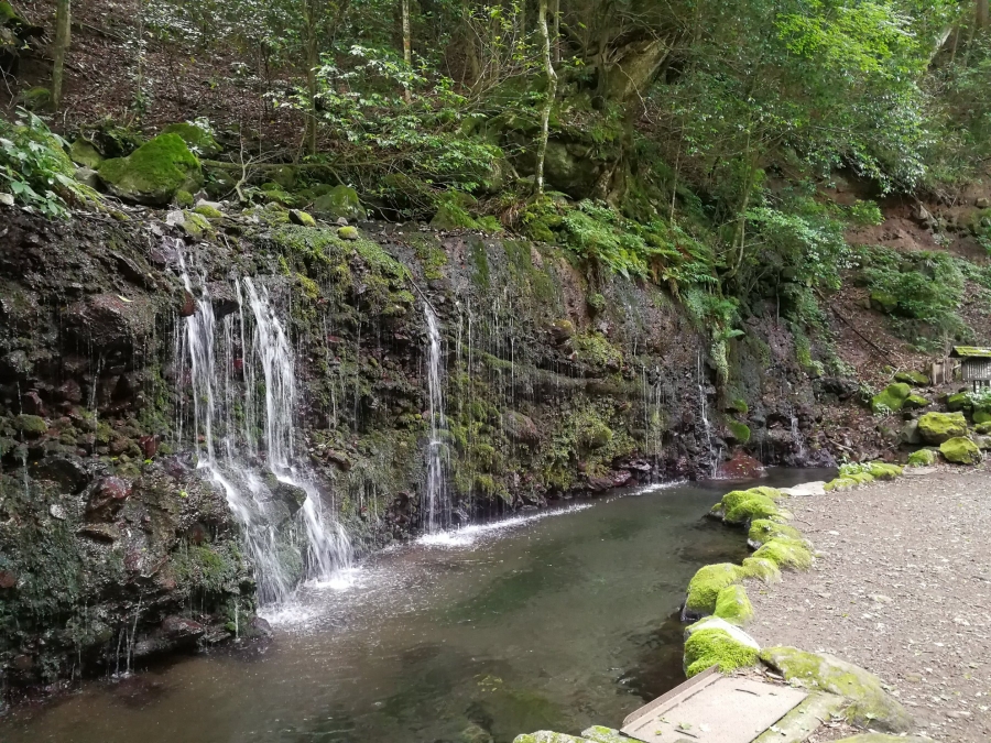 高さ約3mの岩盤から、水が幾筋にも分かれてすだれ状に流れ落ちることから、千条の滝と呼ばれるようになりました。