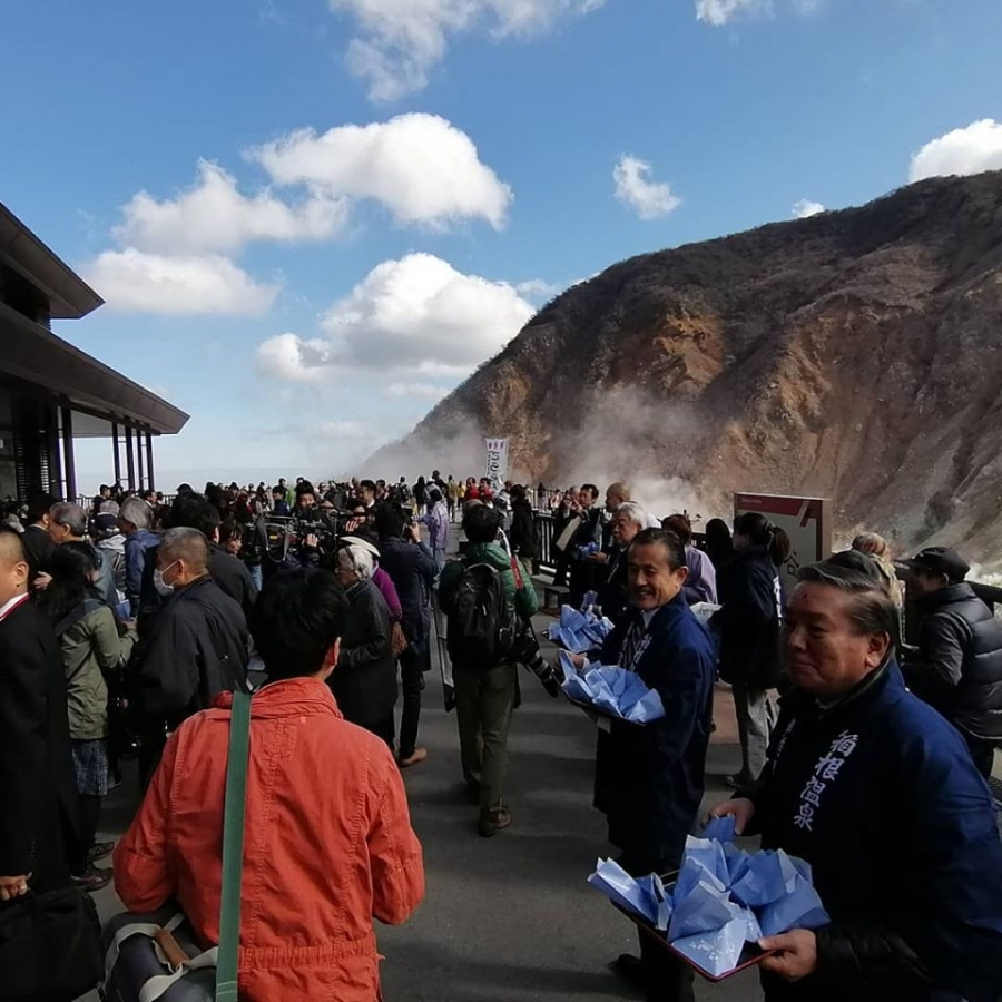 今日は大涌谷園地再会を記念したイベントを開催しました。
