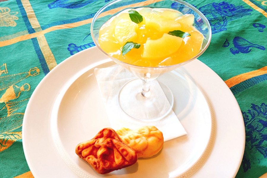 キラキラと黄金色に輝くパイナップルの果肉とパイナップルジュレ。