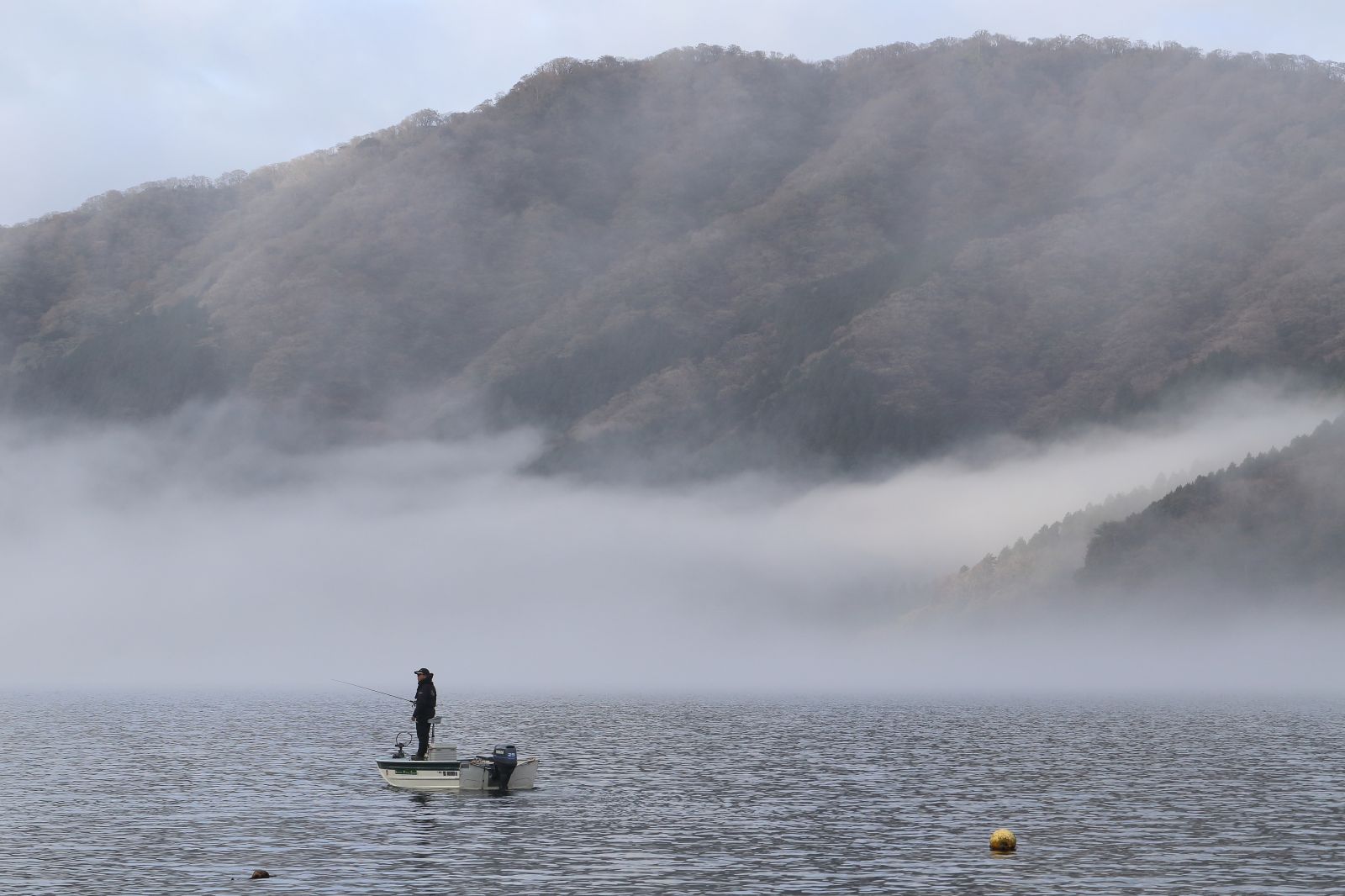 不凍湖の芦ノ湖ではワカサギは氷上穴釣りではなく、ボートからの釣りで、毎年8月頃から釣れ始め、禁漁になる12月まで楽しむ事ができます。