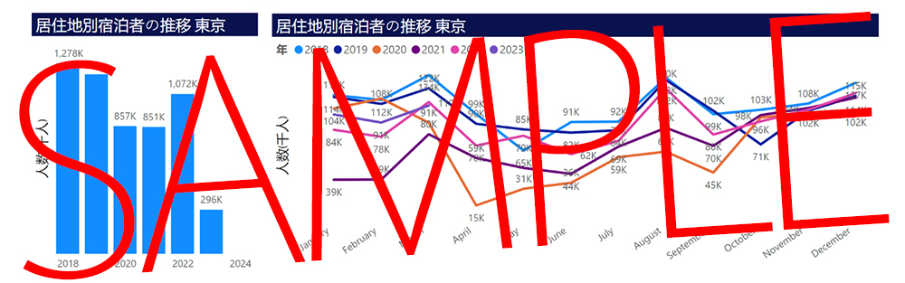 従来の箱根町入込観光客数は年1回の公表ですが、箱根DMO Touch!では、箱根温泉旅館ホテル協同組合のご協力の元、観光予報プラットフォームと掛け合わせることで1ヶ月毎の宿泊者数(国内、国外)、日帰り客数をタイムリーにご確認いただくことが可能です。また、上記内容に加え東京都・神奈川県の宿泊者数の推移をグラフでご確認いただけます。
