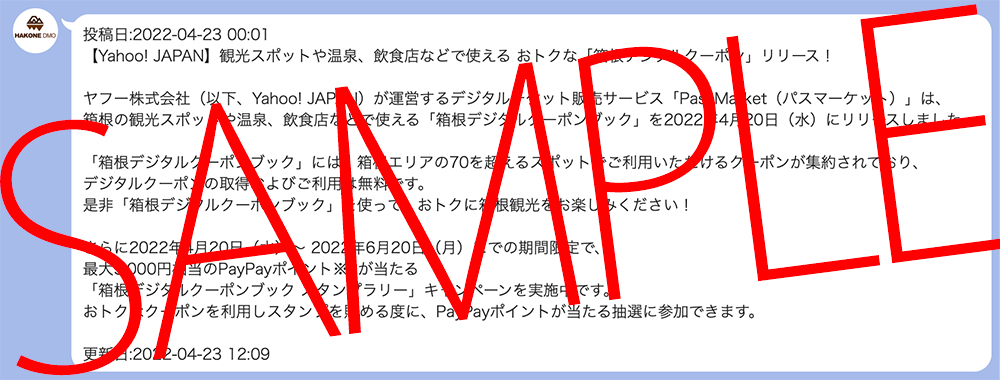 最近のトピックスでは、町内のイベント情報に加え、賛助会員様特典である「DMOだより」の配信や箱根DMOの活動など箱根全山では公開していない情報をご確認いただくことができます。
