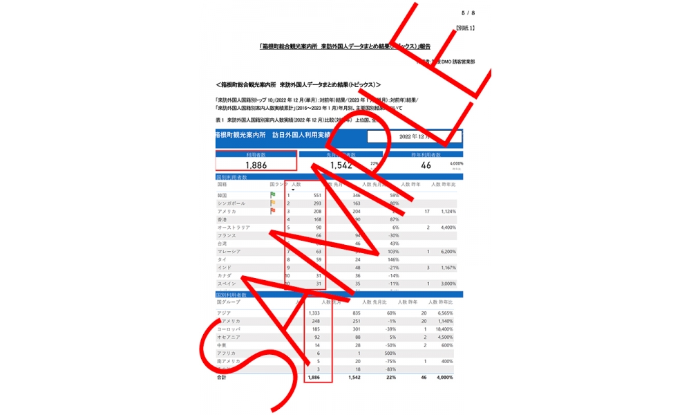 箱根DMOは2018年4月1日の設立より、各所に設置のご協力をいただいている「箱根DMO観光診断書アンケート」等から分析に必要なマーケティングデータが蓄積されてまいりました。