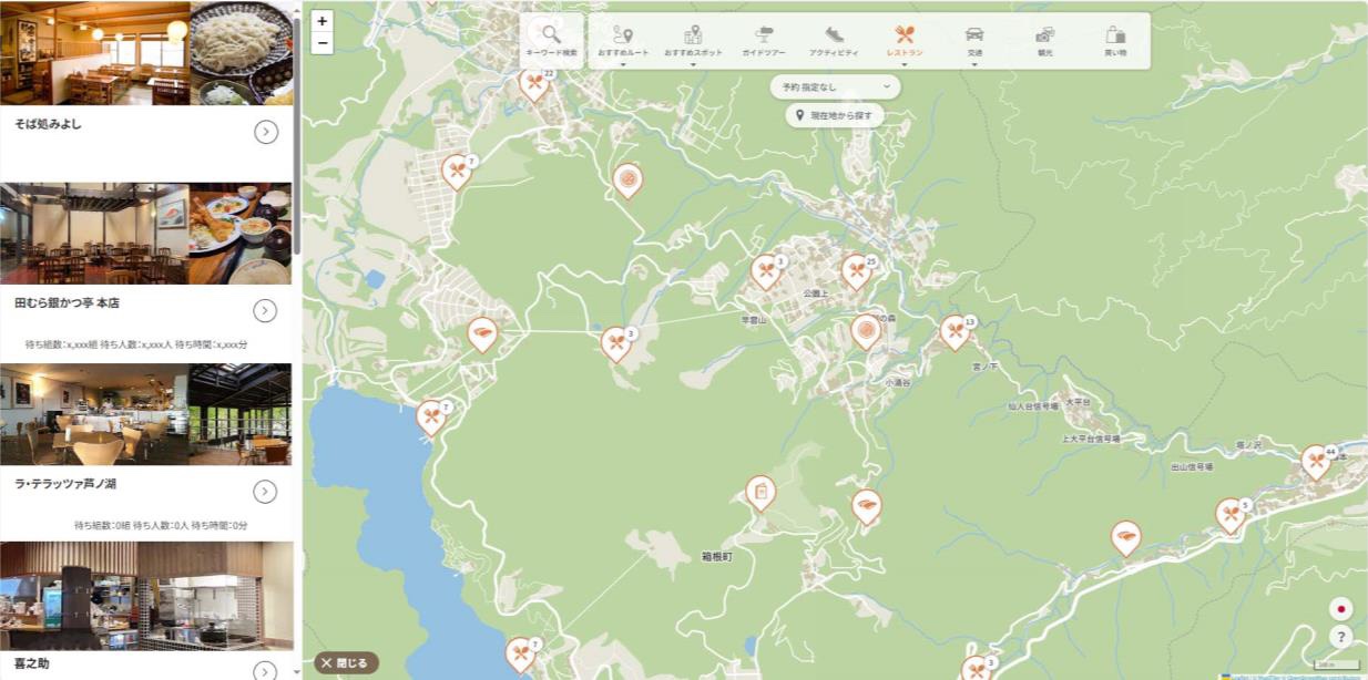 箱根町内の飲食店について、営業時間などの情報発信に加えて、一部の店舗では リクルー トの業務・経営支援サービスである、待ちの不満を解決する受付管理アプリ『Air ウェイト』を 搭載し、混雑状況を表示、オンライン予約もできるようになります。自分の好みのお店がより 選びやすくなり、人気店について、混雑状況を見ながら、待ち時間を更なる観光や買い物、体 験に有効活用いただくことができます。