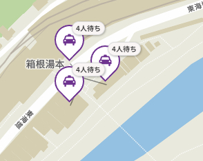 タクシー乗り場(強羅駅・箱根湯本駅)での待ち人数データ とともに、スマートフォンやPC で交通状況が確認できる ため、最適な交通手段の選択や、渋滞を避けた、時間を有 効活用した観光周遊が可能となります。
