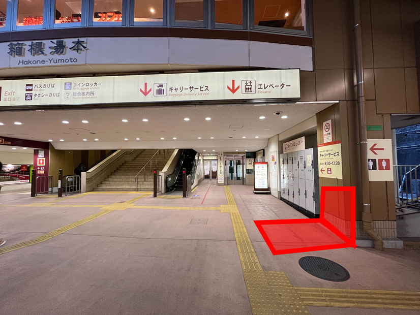 駅から宿へ荷物配送を行う箱根湯本駅構内の「箱根キャリーサービス」での