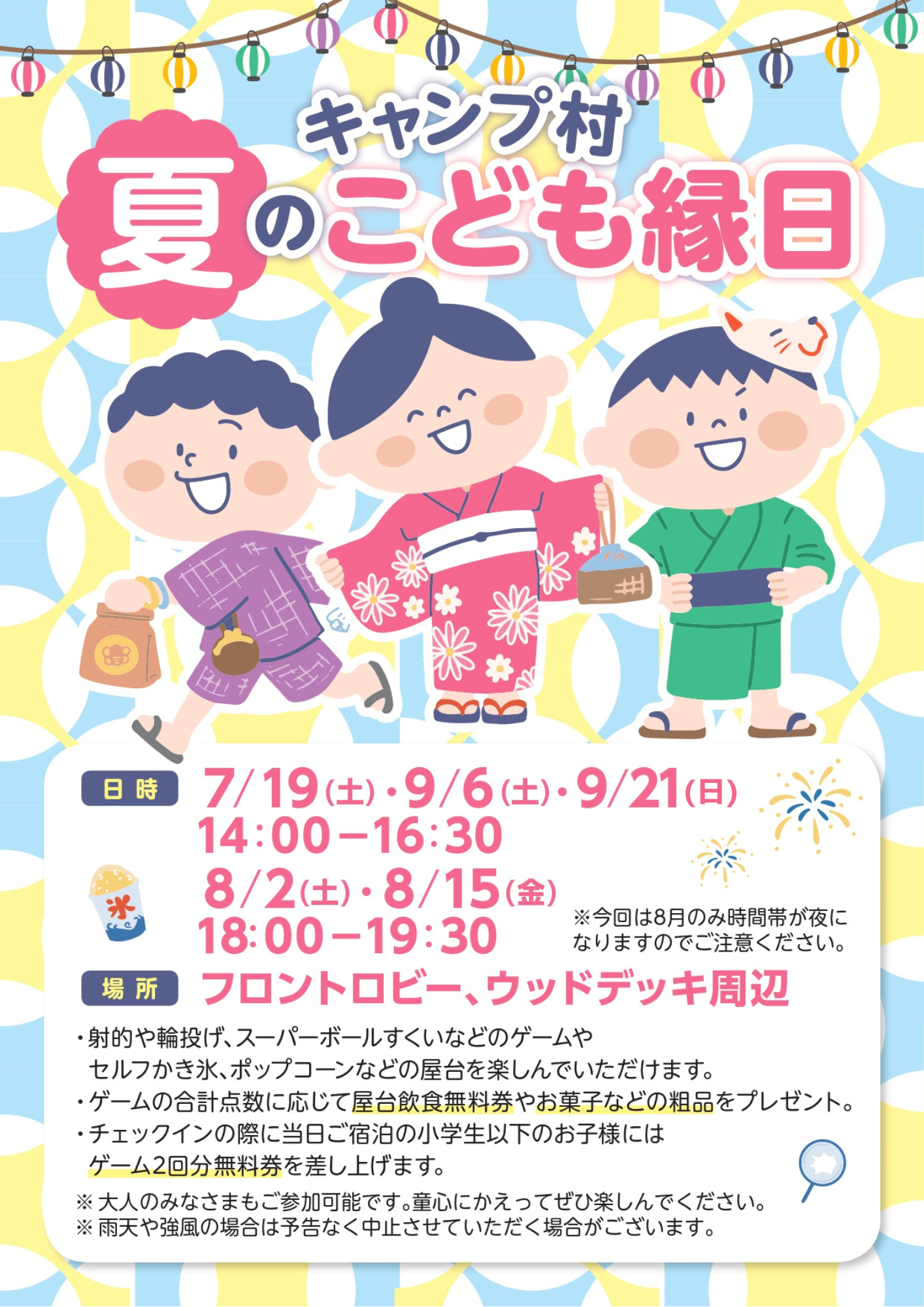 ・射的や輪投げ、スーパーボールすくいなどのゲームや、セルフかき氷、ポップコーンなどの屋台を楽しんでいただけます。