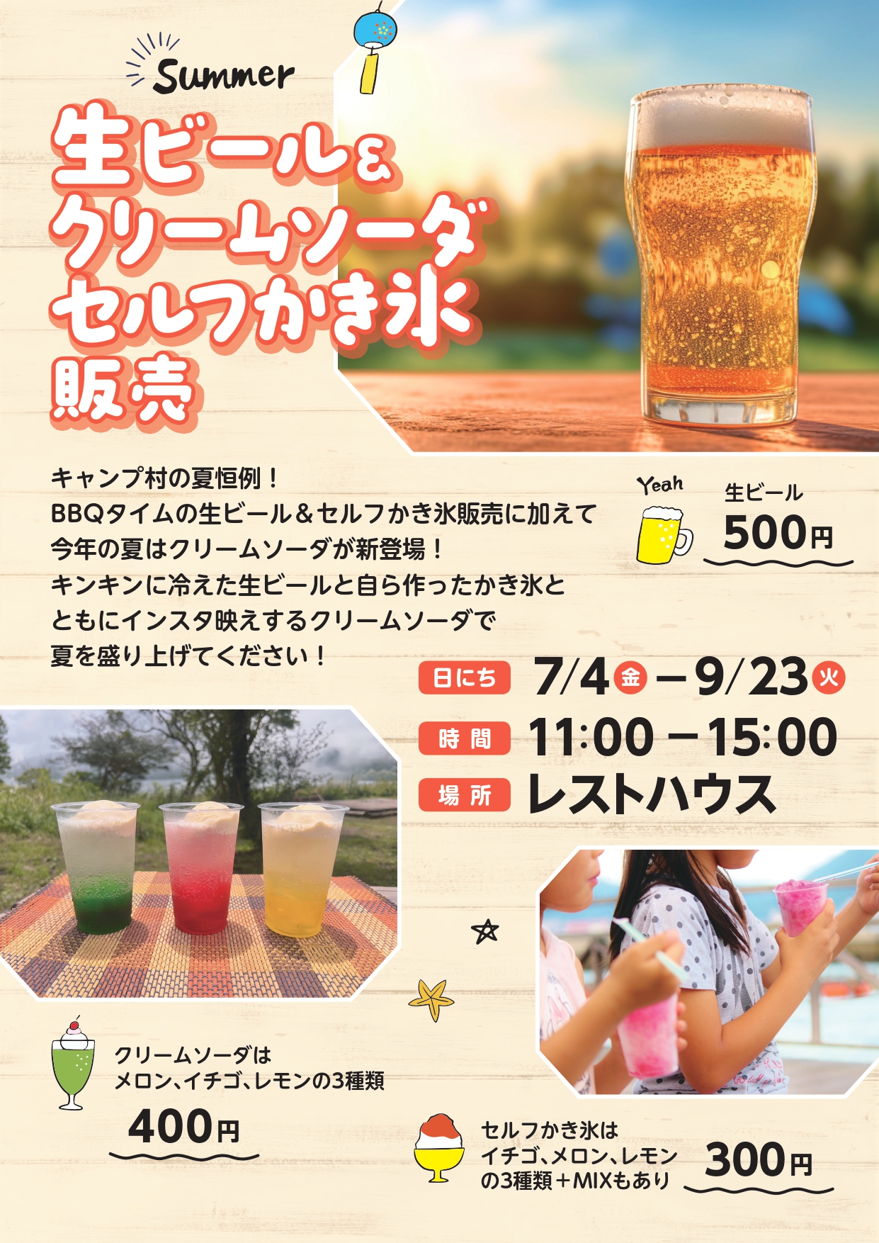 夏限定!生ビール&クリームソーダ&セルフかき氷販売