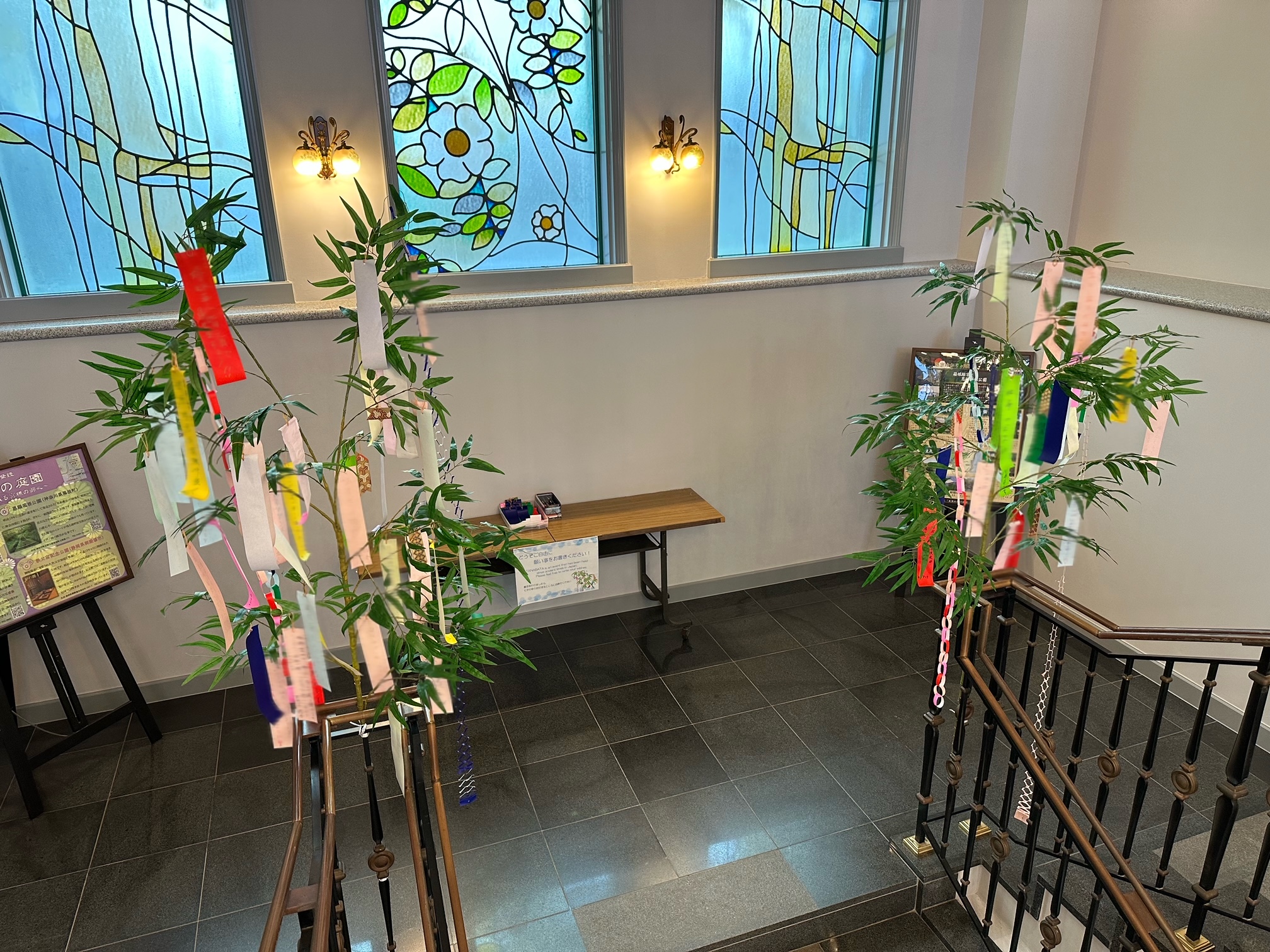 色とりどりの短冊に願い事を書き、笹の葉に飾り付けて願い事をかなえましょう!