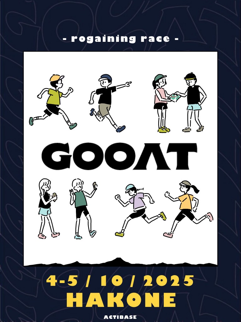 「GOOAT」は仲間と楽しむことに重きを置いたロゲイニングイベントです。登山などのアウトドアをする上でACTIBASEは「仲間」を重要視しています。ロゲイニングという競技には、一定の条件下で仲間と共に戦略を練り、助け合い、ベストを尽くす、そして感動や思い出を分かち合うという、仲間との絆を深める要素が沢山詰まっています。本イベントではそんなロゲイニングの普及と仲間との共同体験を生み出すこと目的としています。
