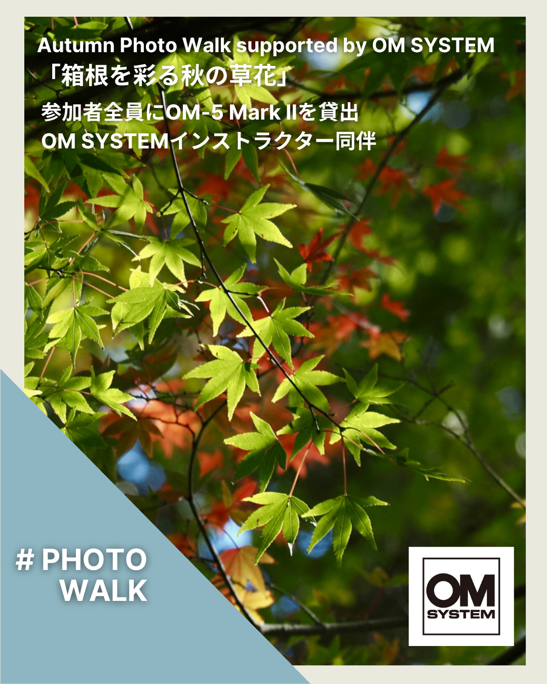 OM SYSTEMのミラーレス一眼カメラ"OM-5"を持って、OM SYSTEMインストラクターと共に、秋色に染まった箱根をテーマに、箱根湯本・塔ノ沢エリアを巡るイベントです