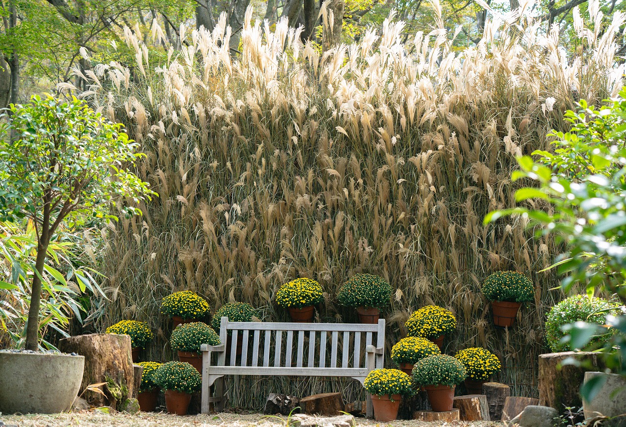 箱根のススキを使ってアーティスティックに装飾されたパビリオンなど、