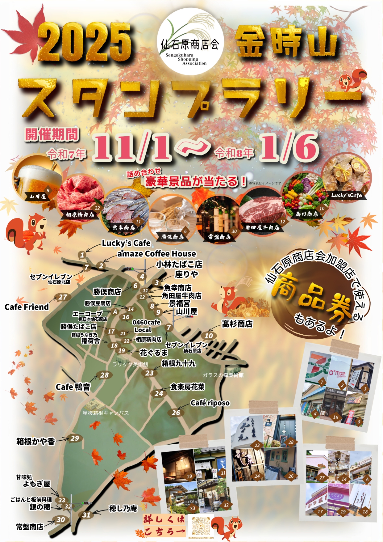 箱根仙石原エリアの飲食店を回って500円ごとのスタンプを集めると、抽選で豪華景品が当たります!