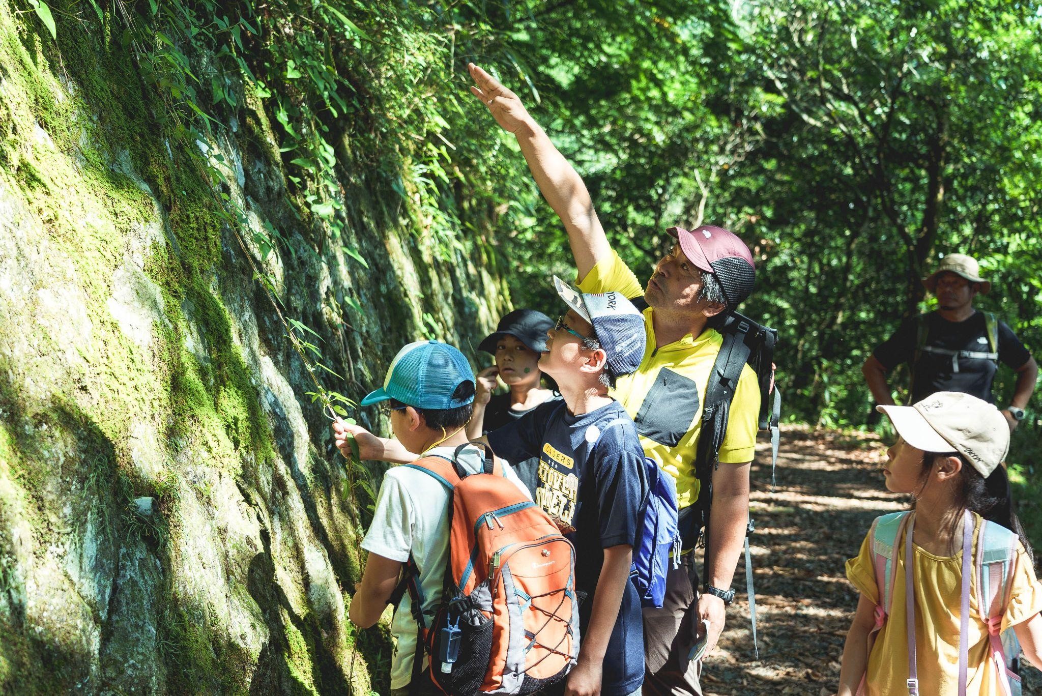 キャンプ場へと戻る下り道では、築紫さんに倣い、出会う植物たちに子どもたちが次々と素敵な名前をつけてゆく。くまのみ、ひげおじさん、こけたろう、もふもふ…