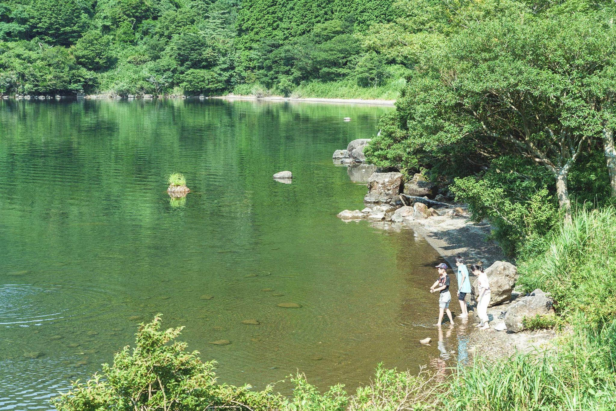 そうしてさんさんと降り注ぐ太陽の下、芦ノ湖畔を元気よく歩きはじめる。先頭に立つガイドの築紫さんは、芦ノ湖の水が秘める不思議を解説してくれた。
