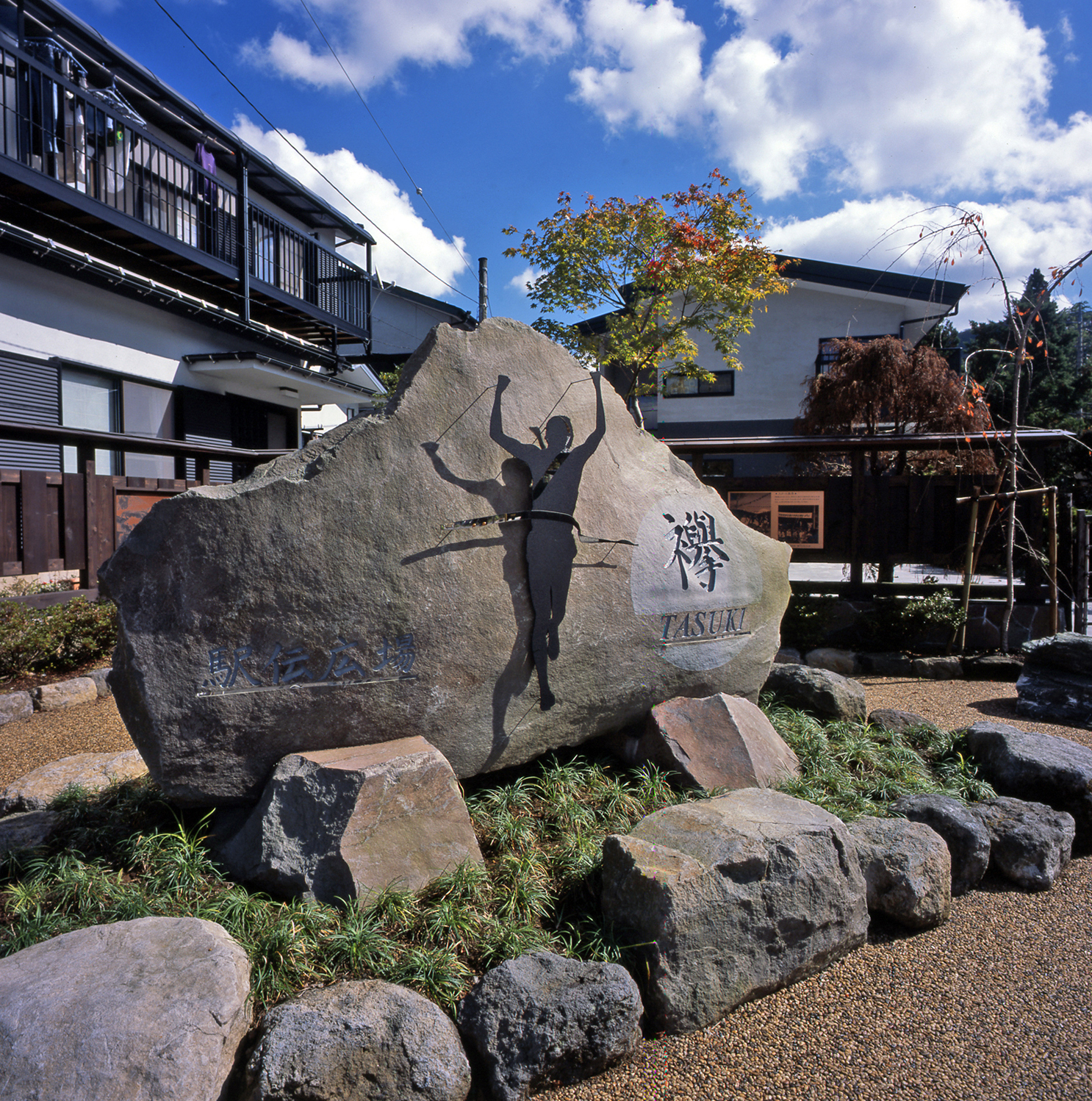 往路フィニッシュ・復路スタート地点の石碑は、芦ノ湖を正面にひっそりと佇んでいますが、駅伝当日は、たくさんのギャラリーで賑わいます。触ってみると当日の歓声が聞こえるようです。