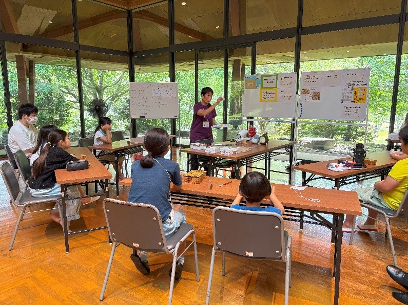 子どもたちがデコレーションボックスを作る最中、保護者のみなさんはパーテーションのむこうで、心理士による講演会と座談会(交流会)も行われました。