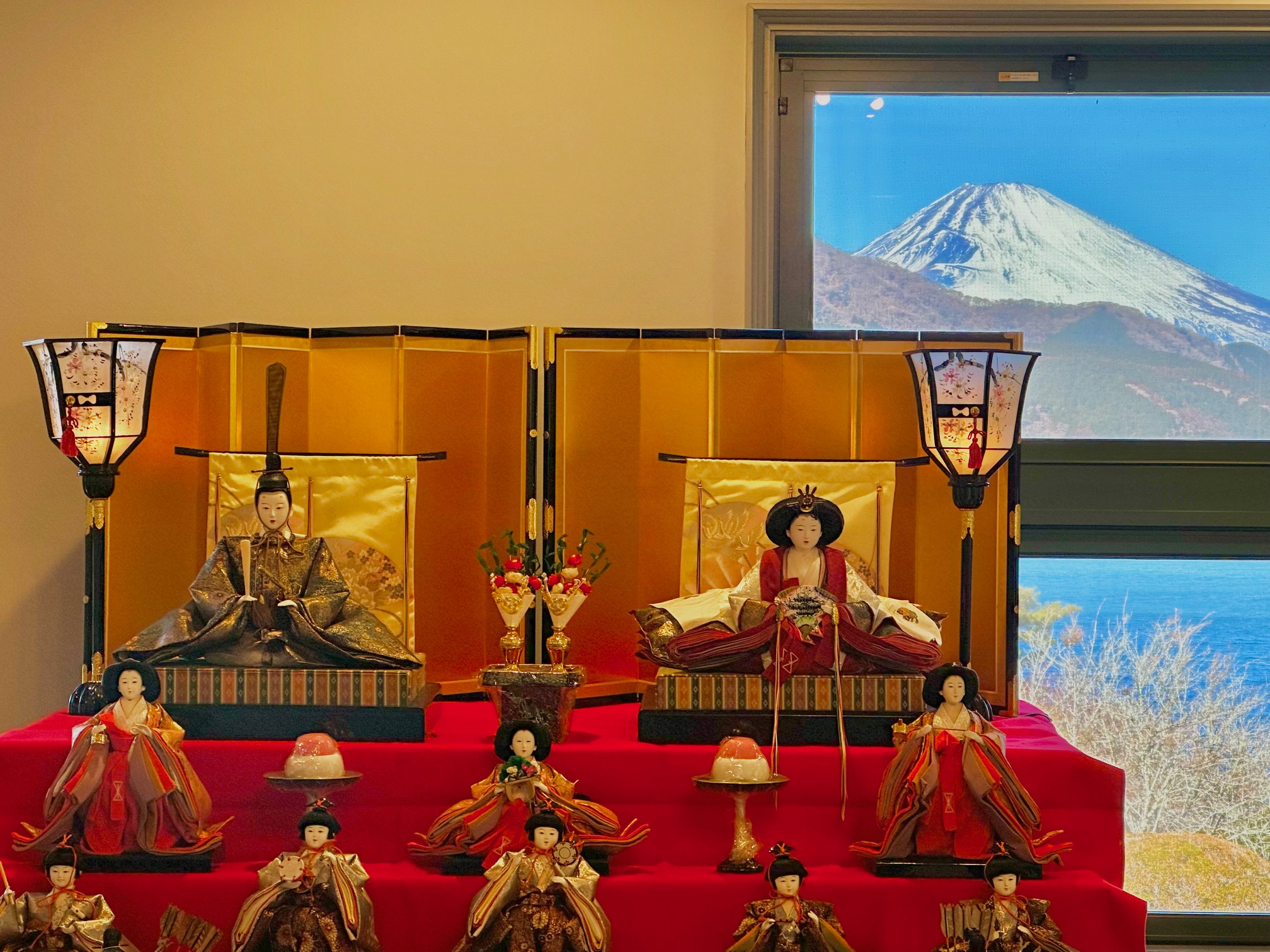 湖畔展望館の2階休憩室で、雛人形の展示を行います