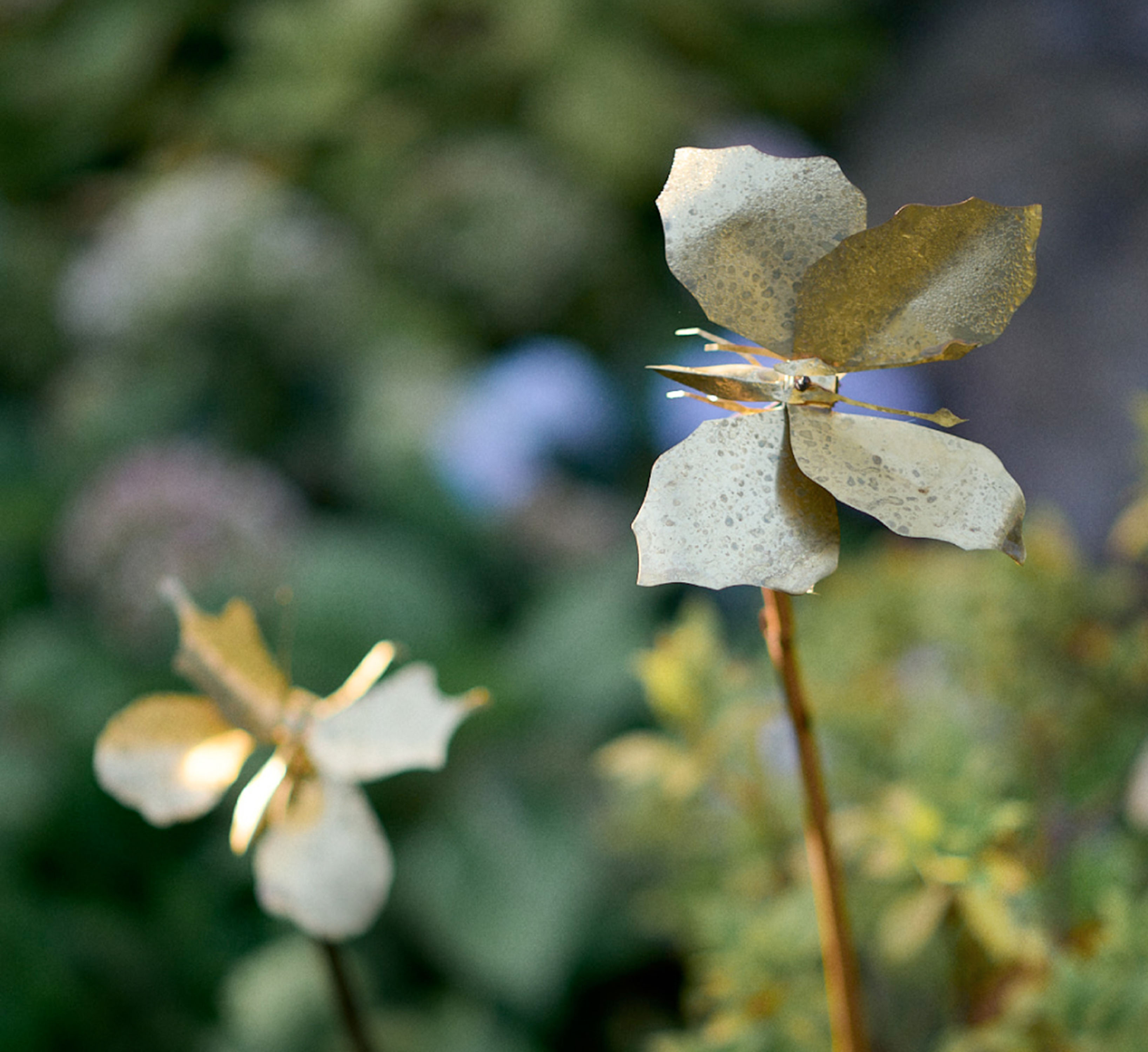 2月末頃まで園内の各パビリオンでは、デンマークのクラフト アーティスト シャーロット・ソーボルグ・オールセンが独自の技法で光輝く金属を折り上げ、組み立てた黄金色の虫たちにニコライ・バーグマンのフラワーデザインを組み合わせた展示会を開催します。