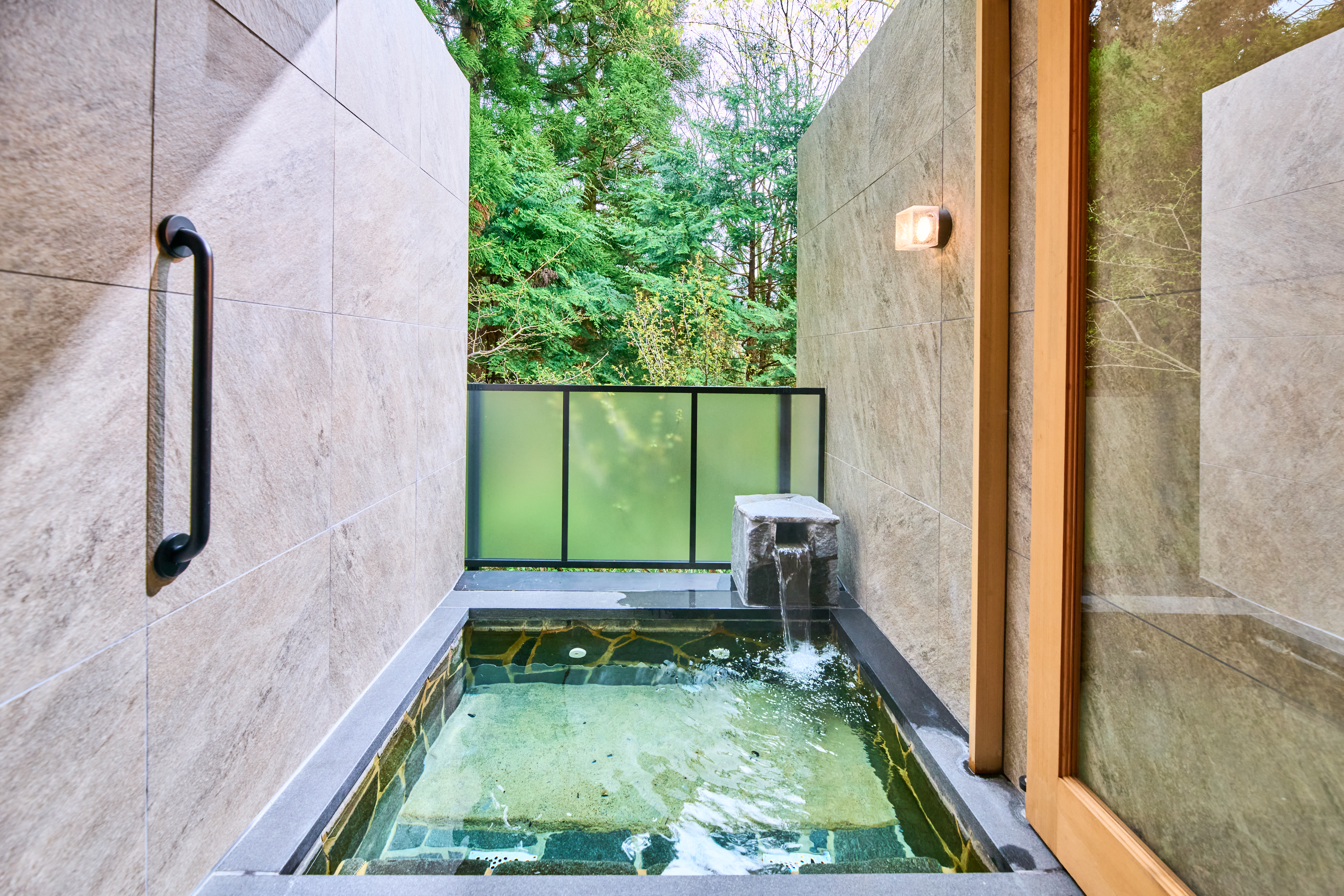 自然に囲まれた露天風呂を、