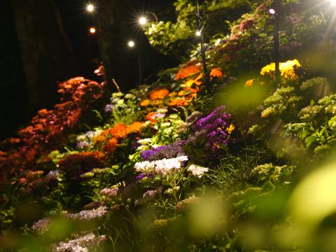 幻想的なライトアップで彩られる紫陽花の森。昼とはまた違う表情をお見せします。