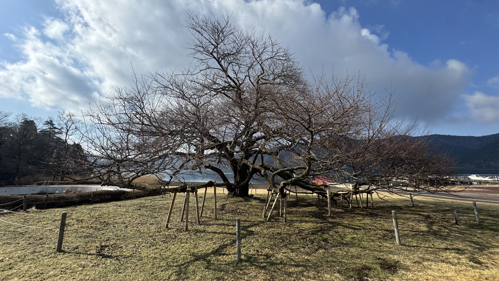 芦ノ湖のほとりに雄大な姿を見せる樹齢80年のオオシマザクラは、夜のライトアップもあり、壮大な姿を見せてくれます。 湖周20km余の芦ノ湖周辺各所に咲いているサクラを遊覧船から眺めることができます。