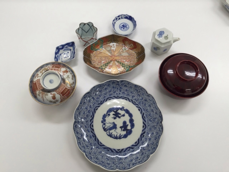 料理の盛り付けに使われる食器は古伊万里などの江戸食器。