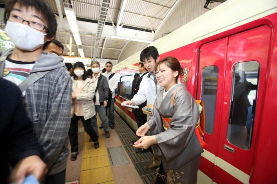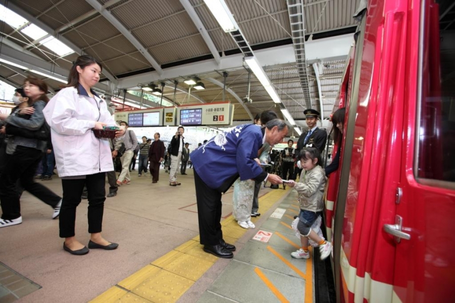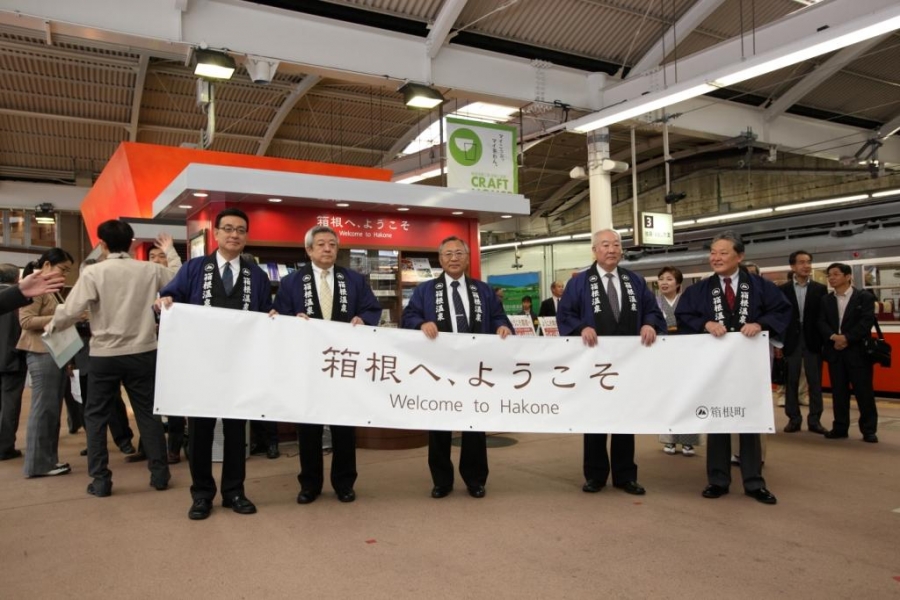 ■箱根湯本駅では、箱根町長をはじめ、町内様々な業種のスタッフ、箱根湯本の