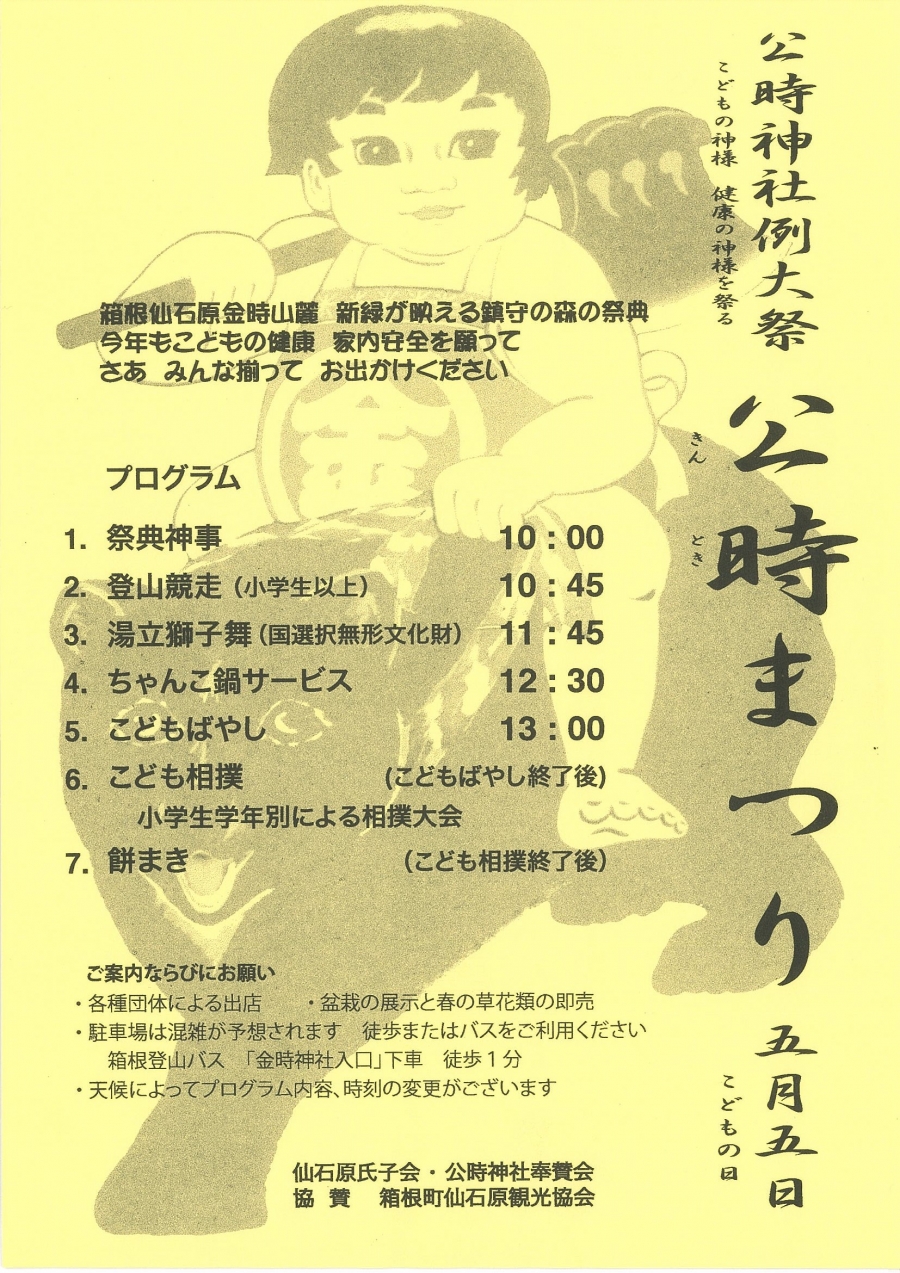 | アクセス | ・駐車場は混雑が予想されますので 徒歩またはバスをご利用ください 箱根登山バス 「金時神社入口」下車徒歩1分 |