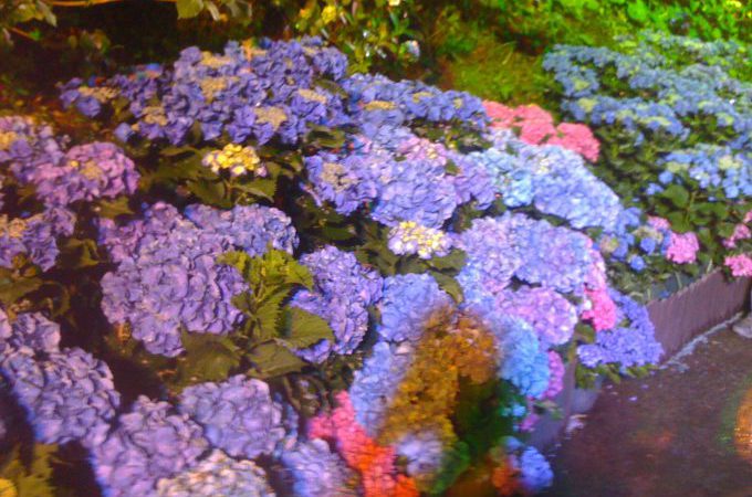 箱根でも、もちろんアジサイが綺麗なスポット、ありますよ!それは、箱根登山電車からのアジサイです。電車の真横、すぐ目の前にアジサイが咲きほこります。特に夜はライトアップされてとてもキレイです。