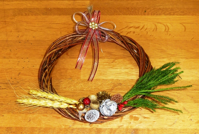 木の実やリボンを飾って、お客様オリジナルのリースが作れます。