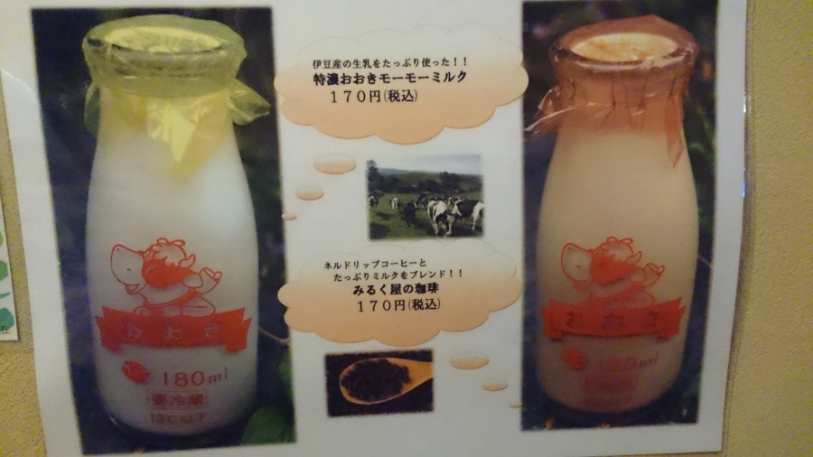 懐かしい瓶の牛乳とコーヒー牛乳を売店で販売しています。