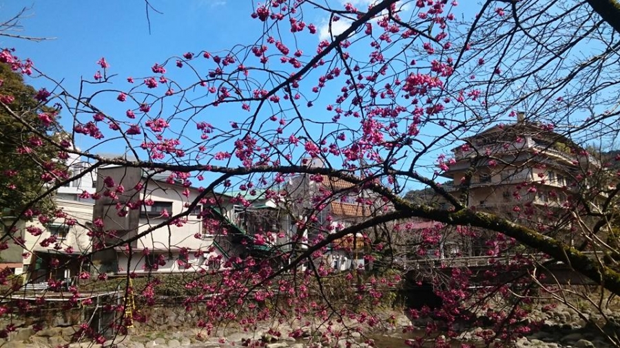 その後、湯本管内を歩いていると梅や早咲きの桜・椿など冬から春へと移り変わりそれぞれの季節の花を見ることができました。