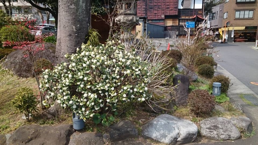 ※追記:吉池旅館さんのお花は、おそらく【ジンチョウゲ】(沈丁花)だと思われます。2月末から3月に咲くお花です。