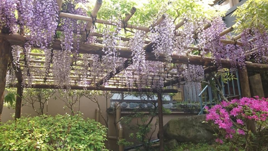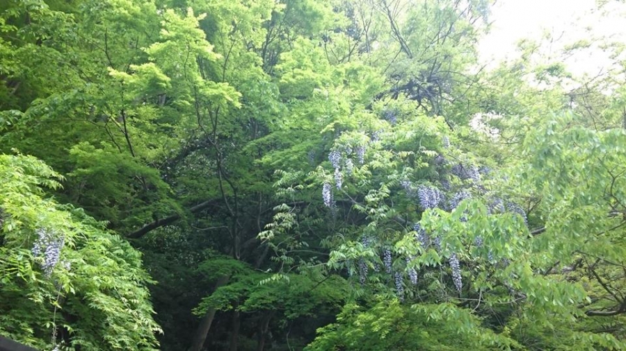 湯本駅前、塔之澤地区・滝通り地区・旧街道など歩いてきましたが樹々の間や山間に目を向けると【藤】が綺麗に咲いている個所が何か所か見受けられました。