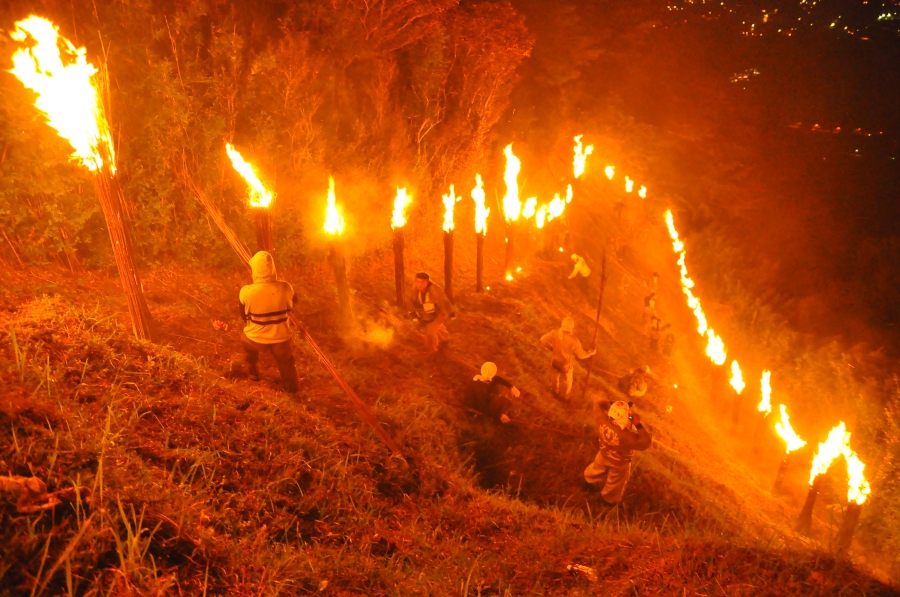 最後に、来る年、来る年、より大きく!美しく!という願いを胸に、お互い励まし合いながら汗を流し、黙々と準備を重ね、当日は暗黒の急斜面に身を躍らせて、灼熱の熱風を浴びながら「大」の字を作る80余名の宮城野青年会の努力があることを申し添えます。
