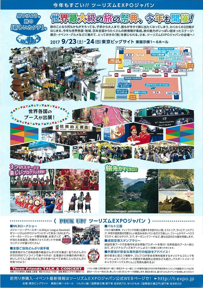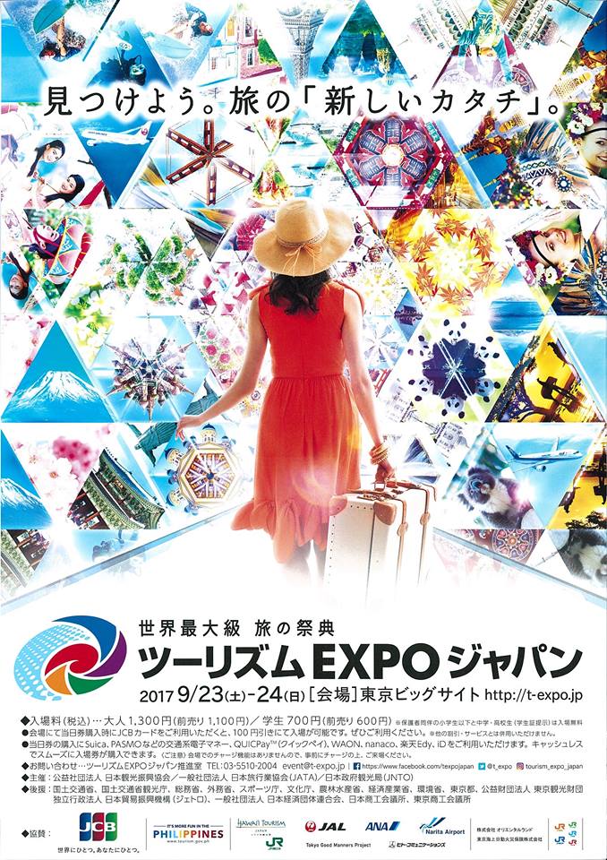 今年も「ツーリズムEXPOジャパン2017」ということで以下の内容にて開催が決定しており、8日後となっています。