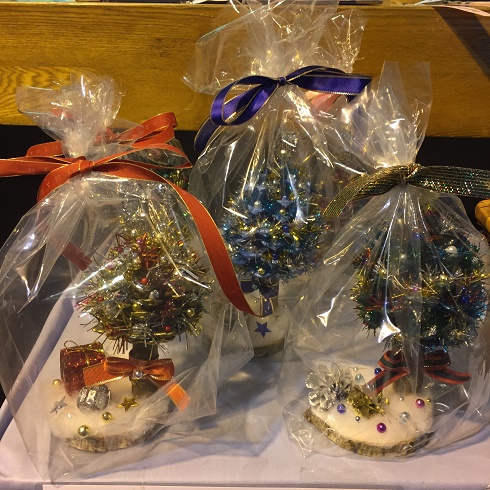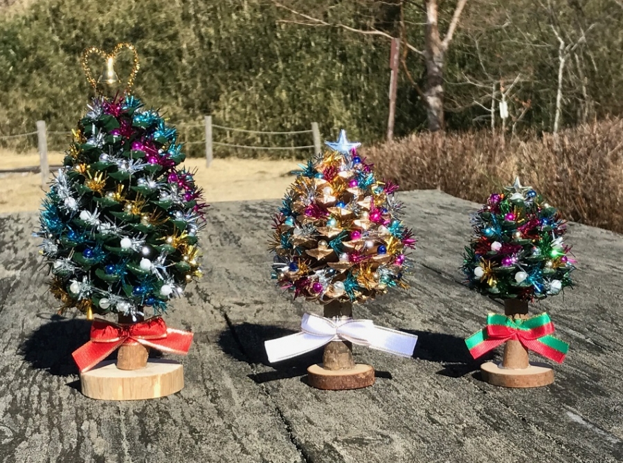 ツリーに見立てたマツボックリにビーズやリボンを飾って、お客様オリジナルのミニクリスマスツリーが作れます。