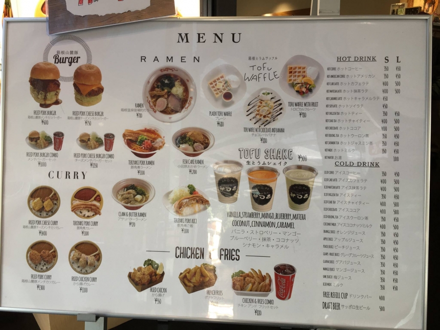 場所としましては、箱根湯本駅の改札から出て国道1号線に並行している湯悠デッキをまっすぐ進み、左に曲がったところにありますので、徒歩1分程度で雨にも濡れずに立ち寄ることができる便利なお店です。