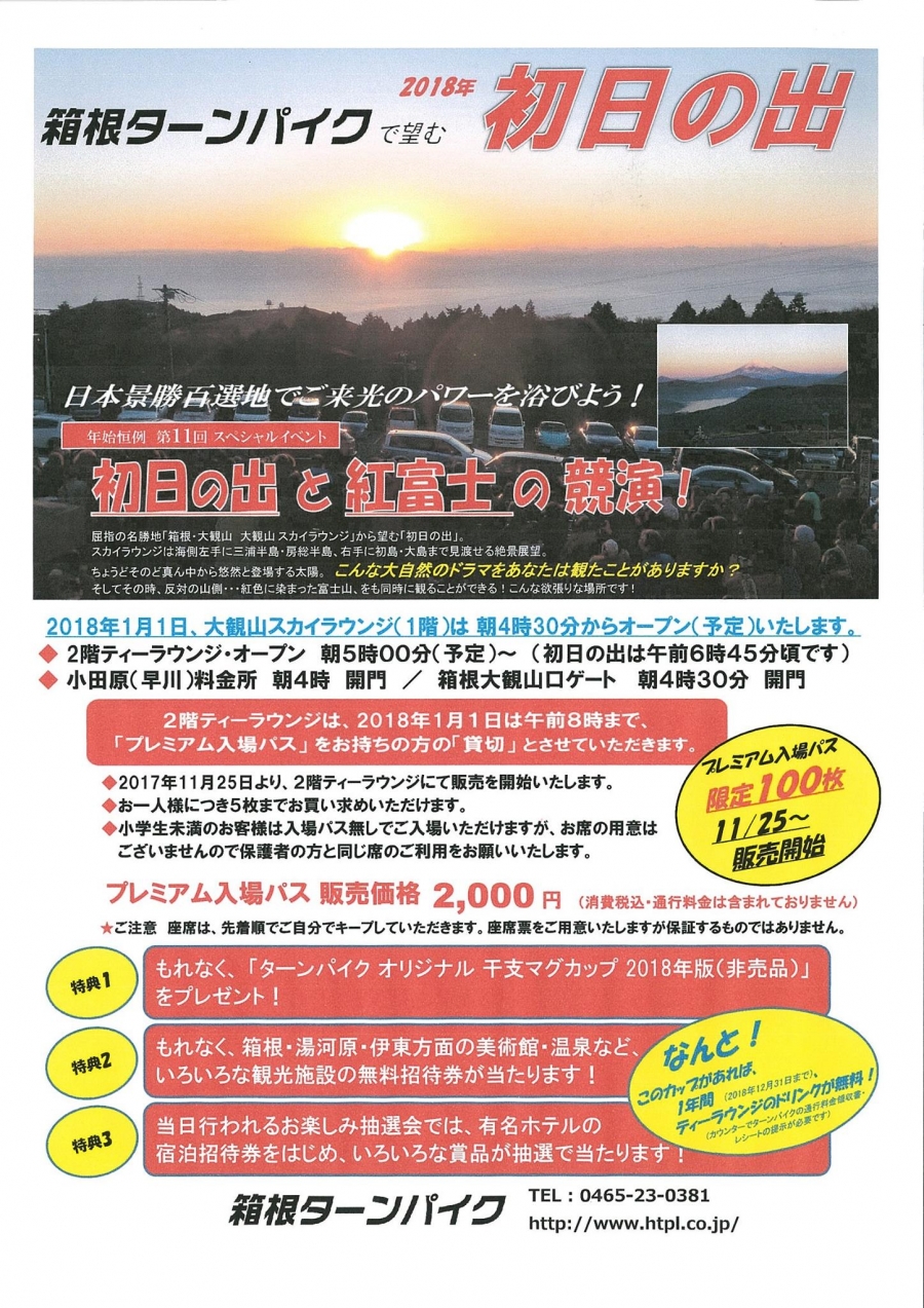年末年始に箱根にお出かけをご予定されておりましたら、防寒対策や自動車などの運転にご注意いただきながら、箱根での「初日の出」観賞もプランの一つとしてご検討いただければと思います。