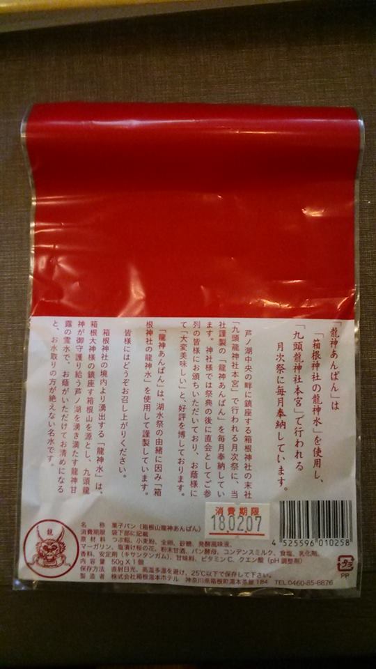 ”箱根山龍神あんぱん”は、「箱根神社の龍神水」を使用し、「九頭龍神社本宮」で行われる月次際に毎月奉納されているパンです。私にとっては、サイズとしては、大きくもなく小さくもなく、餡のつぶ餡も、あますぎずということで、とても食べやすく感じました。観光などをしていて小腹がすいた時には、ちょうどよいおやつになるのではとも感じました。また、店内には、インスタ掲載用に箱根神社の鳥居との組み合わせで、掲載写真のような撮影スポットもありました。