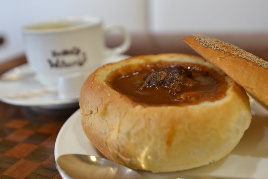 ビーフシチューがたっぷり入っているのに、それに負けないパンの存在感。しっかり染み込んでいる部分も、その影響を受けないフタと外側はパリッとザクっとしています。しかもその具はお肉もお野菜もゴロゴロ入っていてこれ一つでも満足感が凄いです。