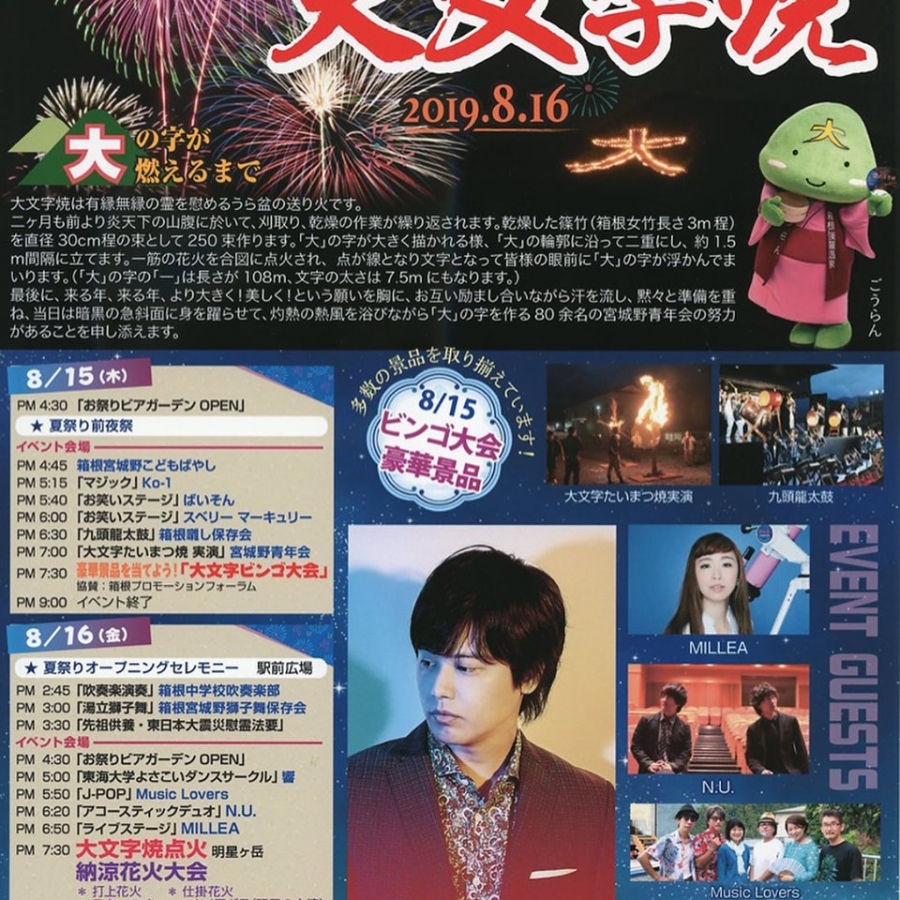 さて、本日は8/16(金)に開催されます「第98回 箱根強羅夏まつり大文字焼」についてご紹介します。
