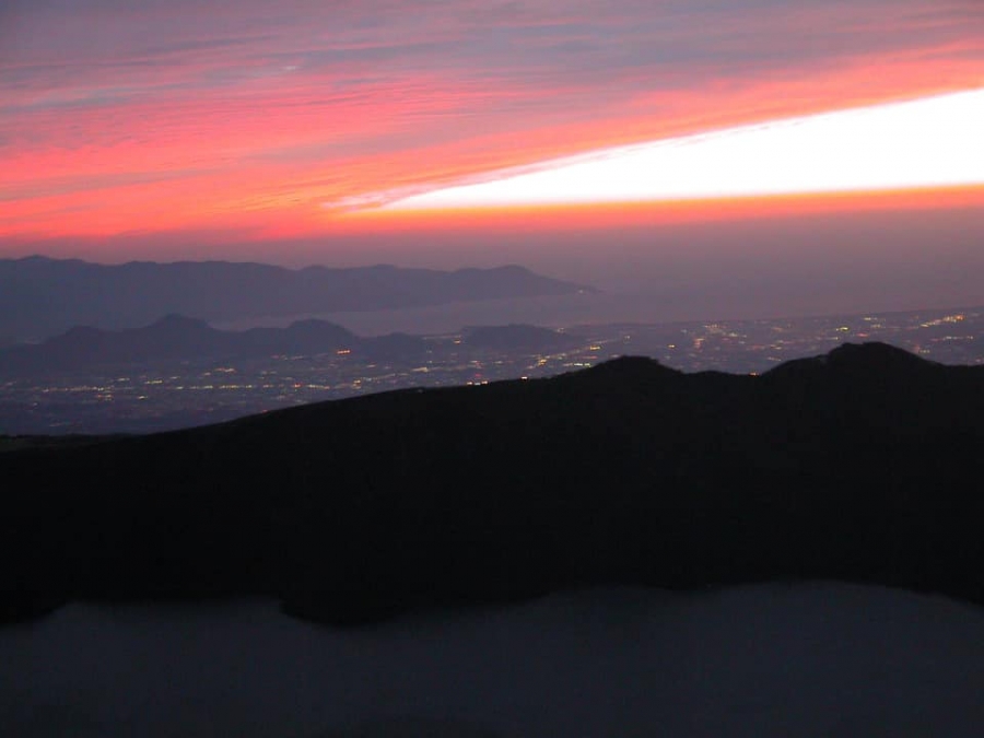 駒ヶ岳山頂の標高は1,356mと箱根外輪山の中でも2番目に高い山です。夕陽が富士山の裾まであたり赤く染まる光景 を見ることができるのは、芦ノ湖畔周辺では駒ヶ岳山頂のみです。
