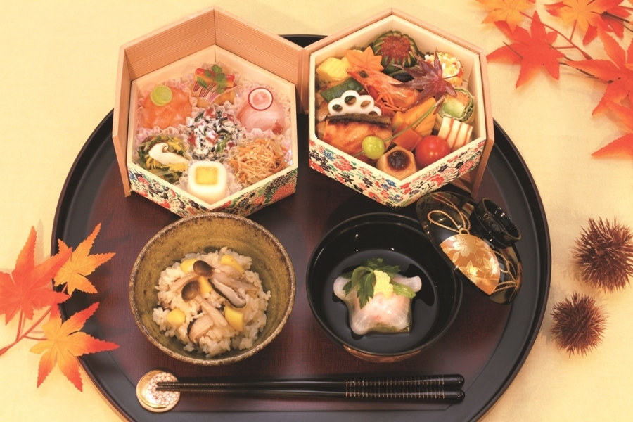 旬の秋鮭や松茸、栗など秋の味覚をご堪能いただける特製のお重弁当です。
